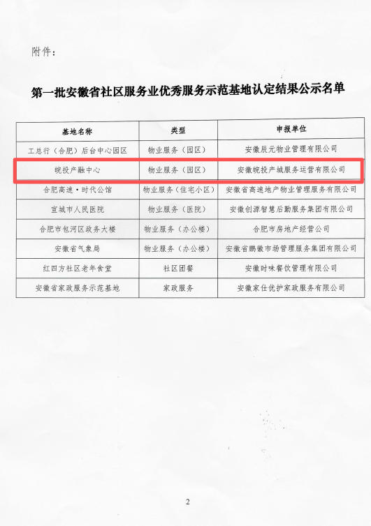 近日,由安徽省社區(qū)服務(wù)業(yè)協(xié)會和新安晚報社組織的安徽省社區(qū)服務(wù)業(yè)優(yōu)秀服務(wù)示范基地評選中,皖投服務(wù)公司在管項目皖投·產(chǎn)融中心憑借產(chǎn)業(yè)服務(wù)、智慧化管理、多業(yè)態(tài)融合等領(lǐng)域的突出實踐和優(yōu)異表現(xiàn)榮獲“第一批安徽省社區(qū)服務(wù)業(yè)優(yōu)秀服務(wù)示范基地”。